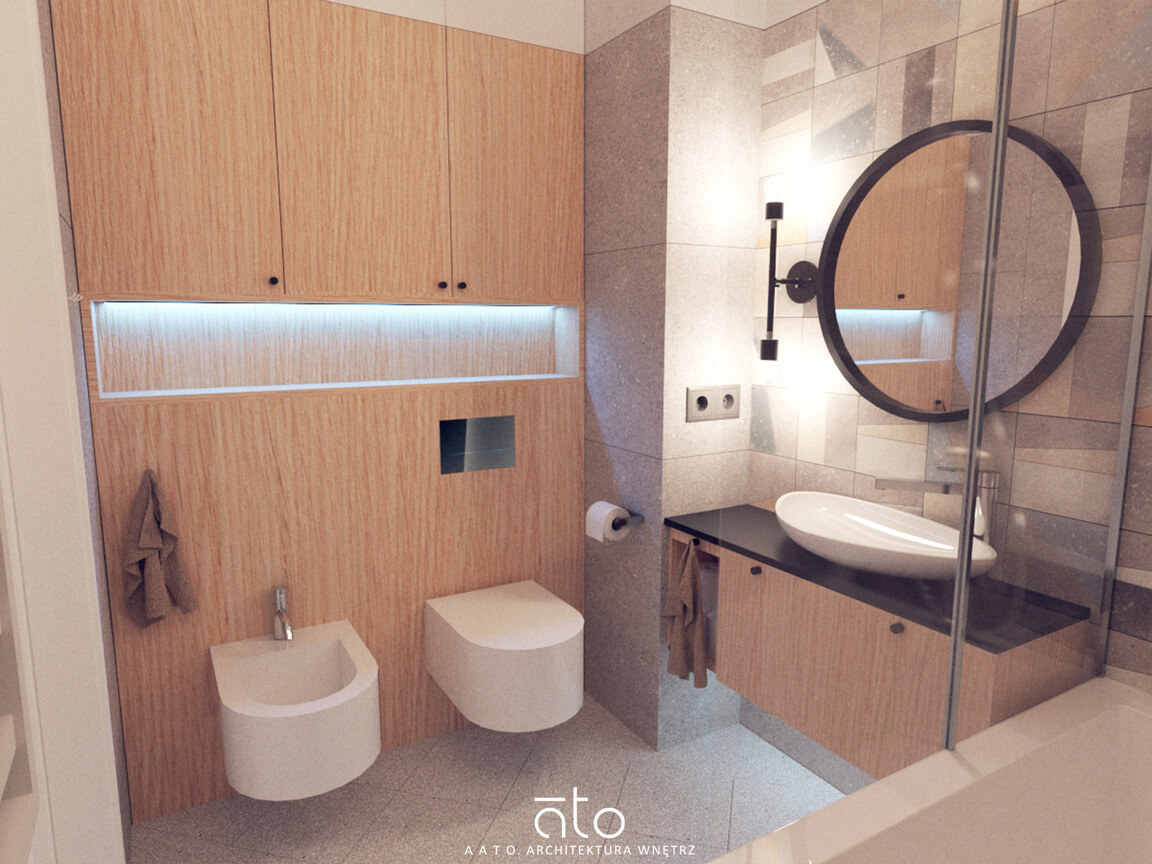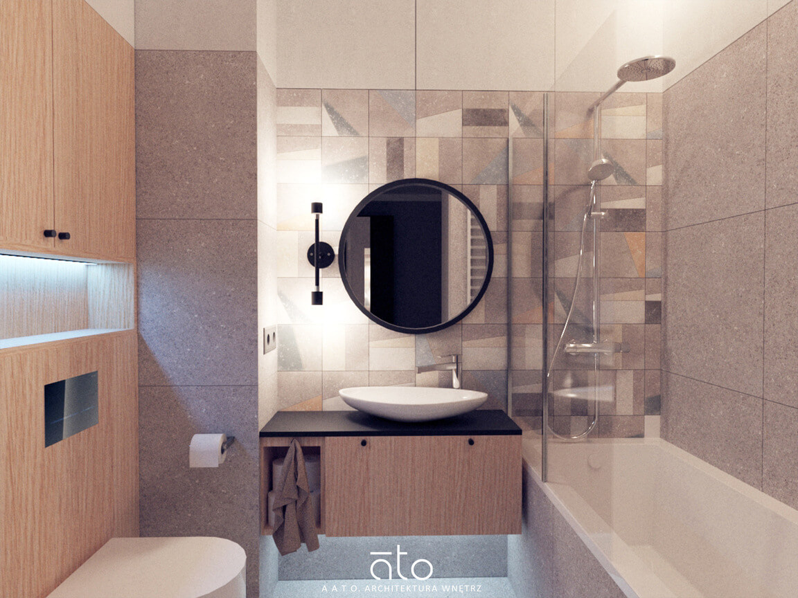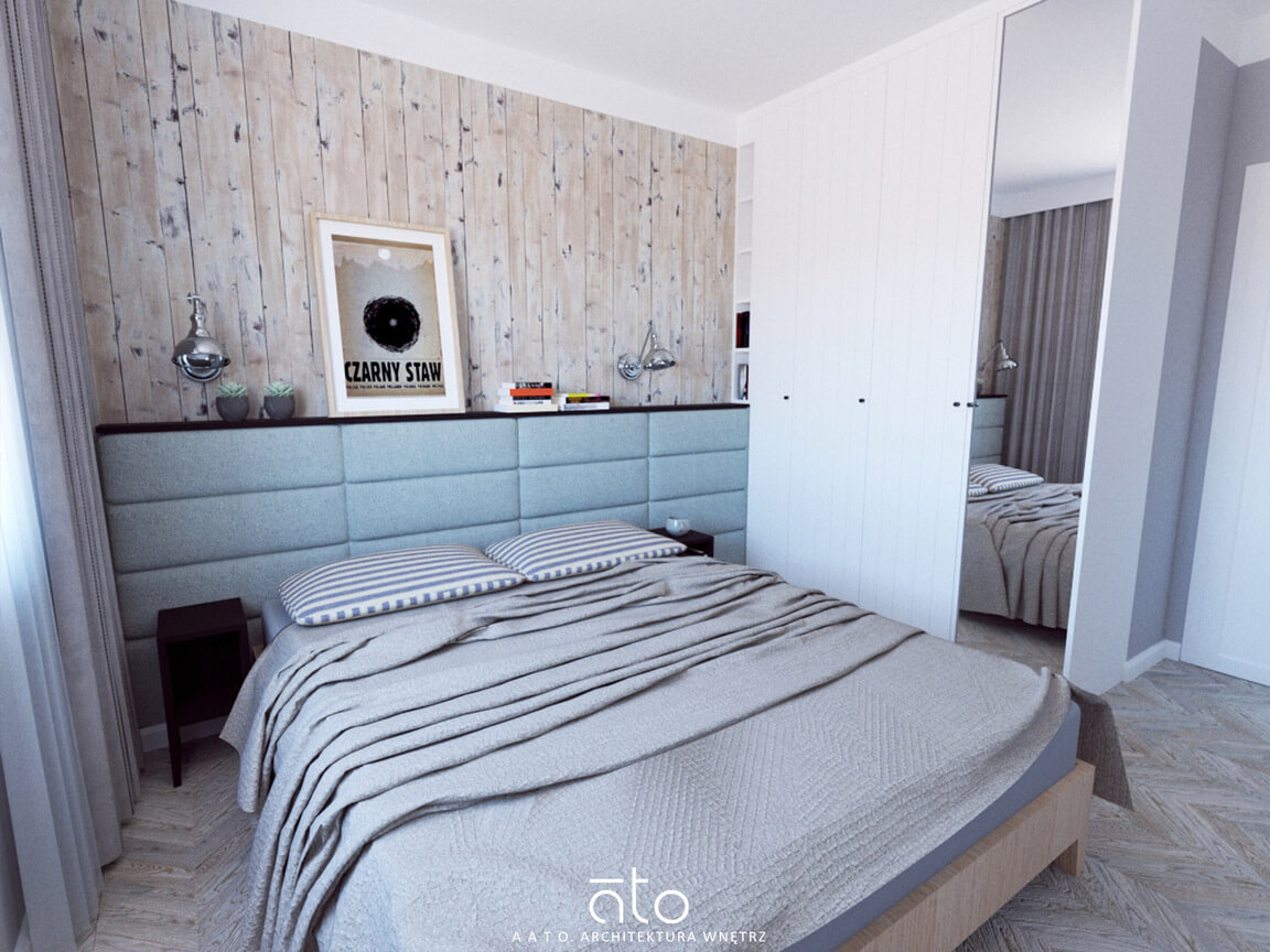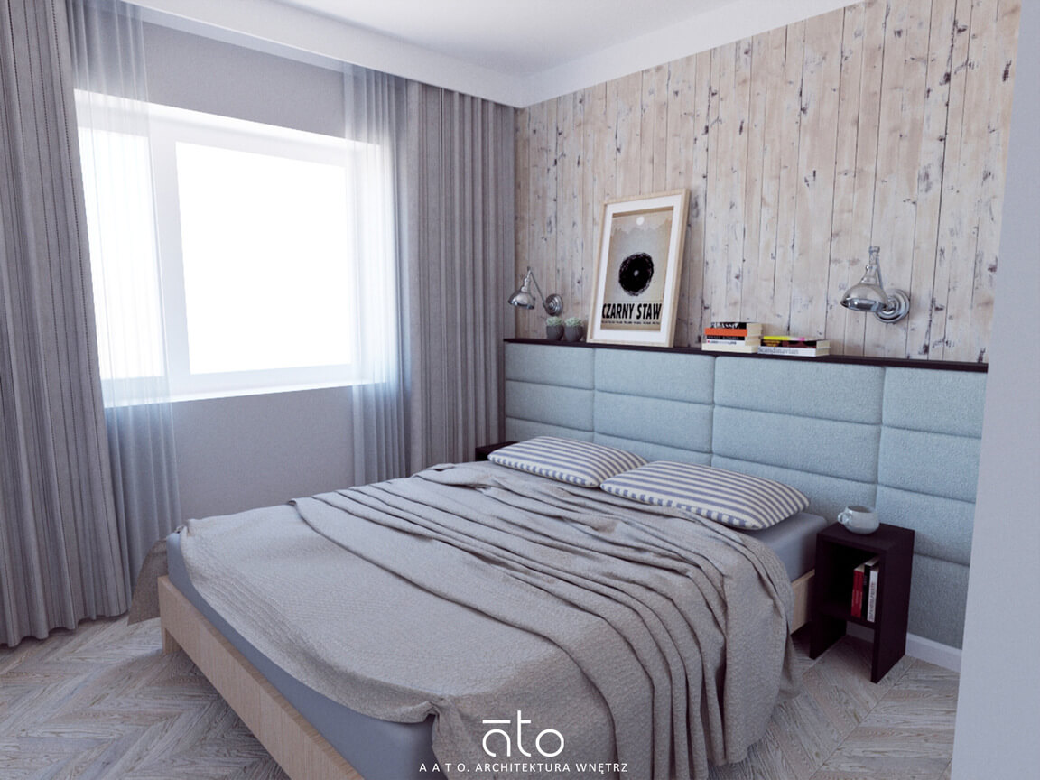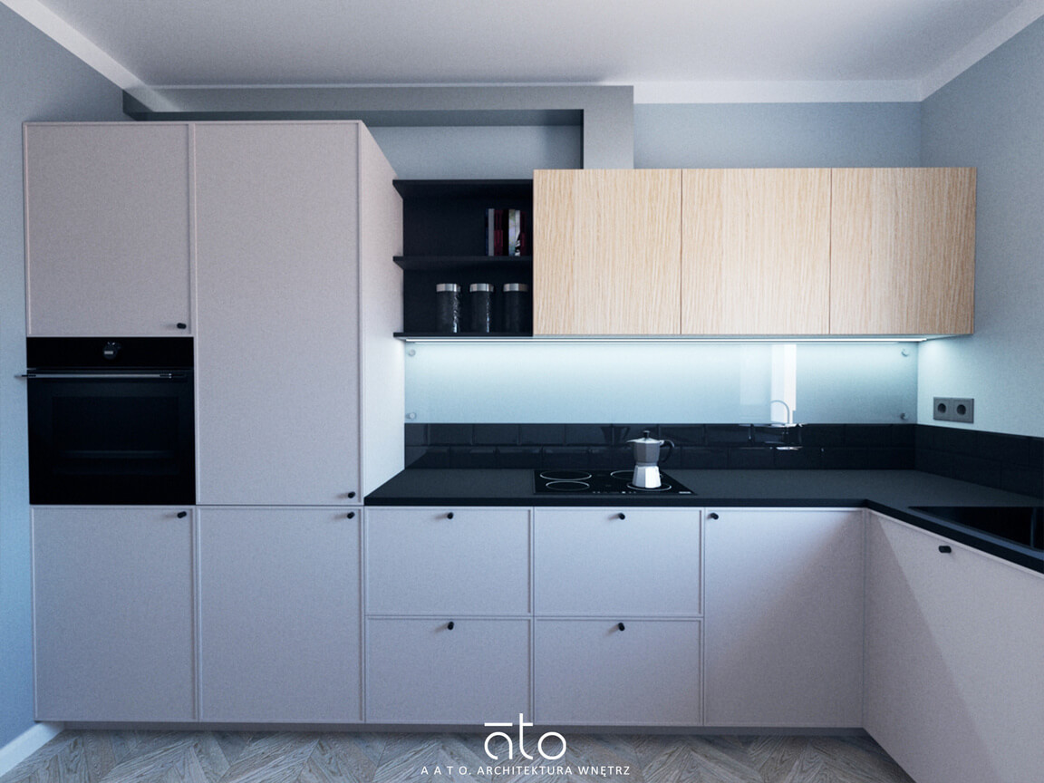 Mieszkanie jakich jest już mało. Przestronne, z oddzielną kuchnią i oknami na dwie przeciwległe strony budynku umożliwiające wietrzenie na przestrzał. Całkiem niezły układ deweloperski mieszkania nie wydzielał niestety części wejściowej. Żeby delikatnie oddzielić przestrzeń, nie tracąc przy tym przestrzenności, dodana została na przeciwko drzwi wejściowych ścianka szklana w metalowych ramach. W mieszkaniu dominuje jasne, ciepłe drewno i pastelowe kolory ścian i mebli.